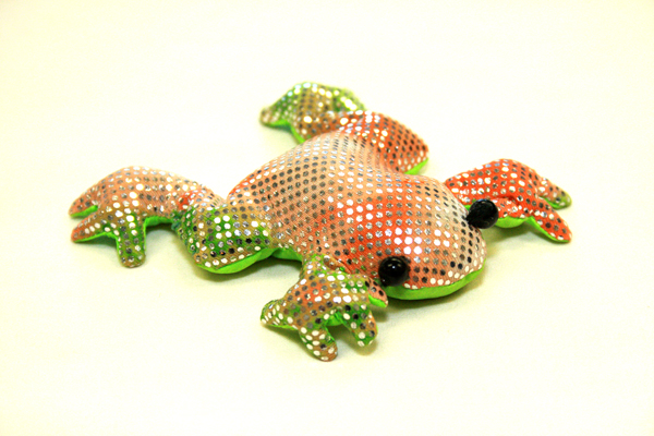 CO2: This is a hand sewn frog made of synthetic and active wear fabric. It was purchased at a Hmong crafts booth at the Festival of Nations in 2012 in Saint Paul, Minnesota. Children love the feel of the sand animals due to their soft touch.